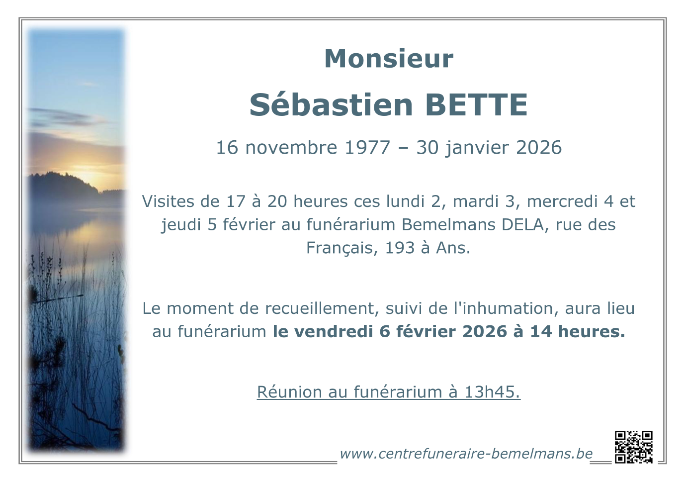 Décédé à Liège (4000, Belgique) le vendredi 30 janvier 2026 à l'âge de 48 ans
