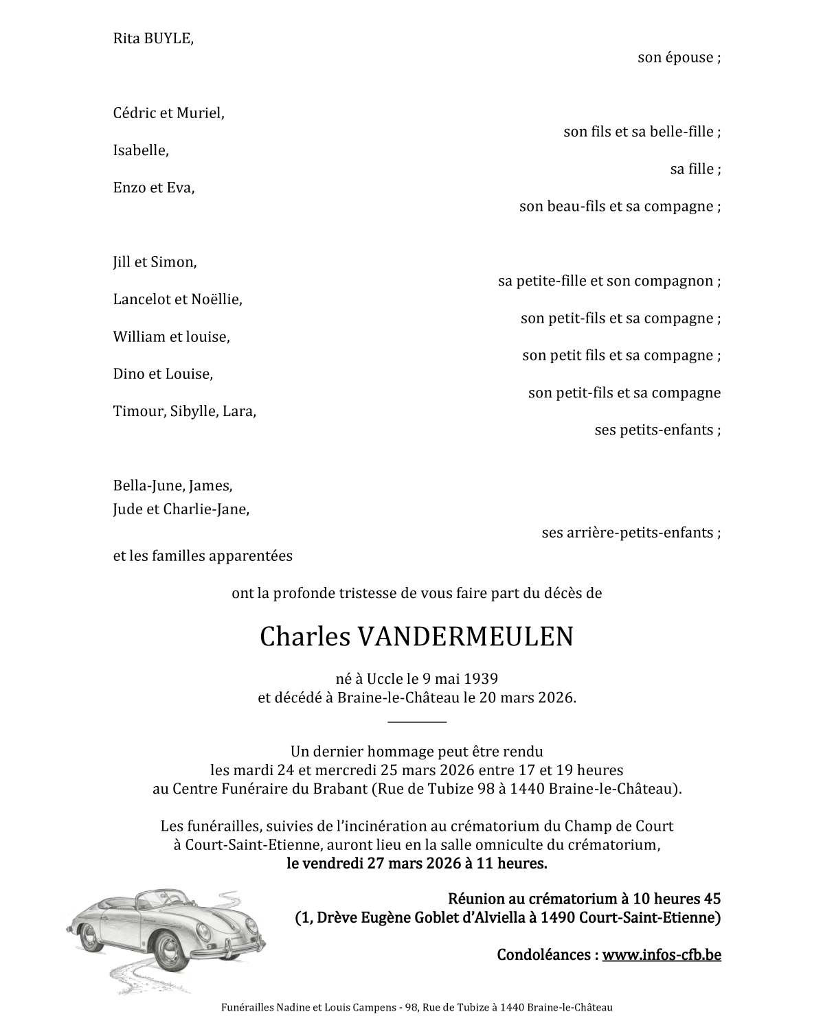 Fallecido en Braine-le-Château (1440, Bélgica) el viernes, 20 de marzo de 2026 a la edad de 86 años