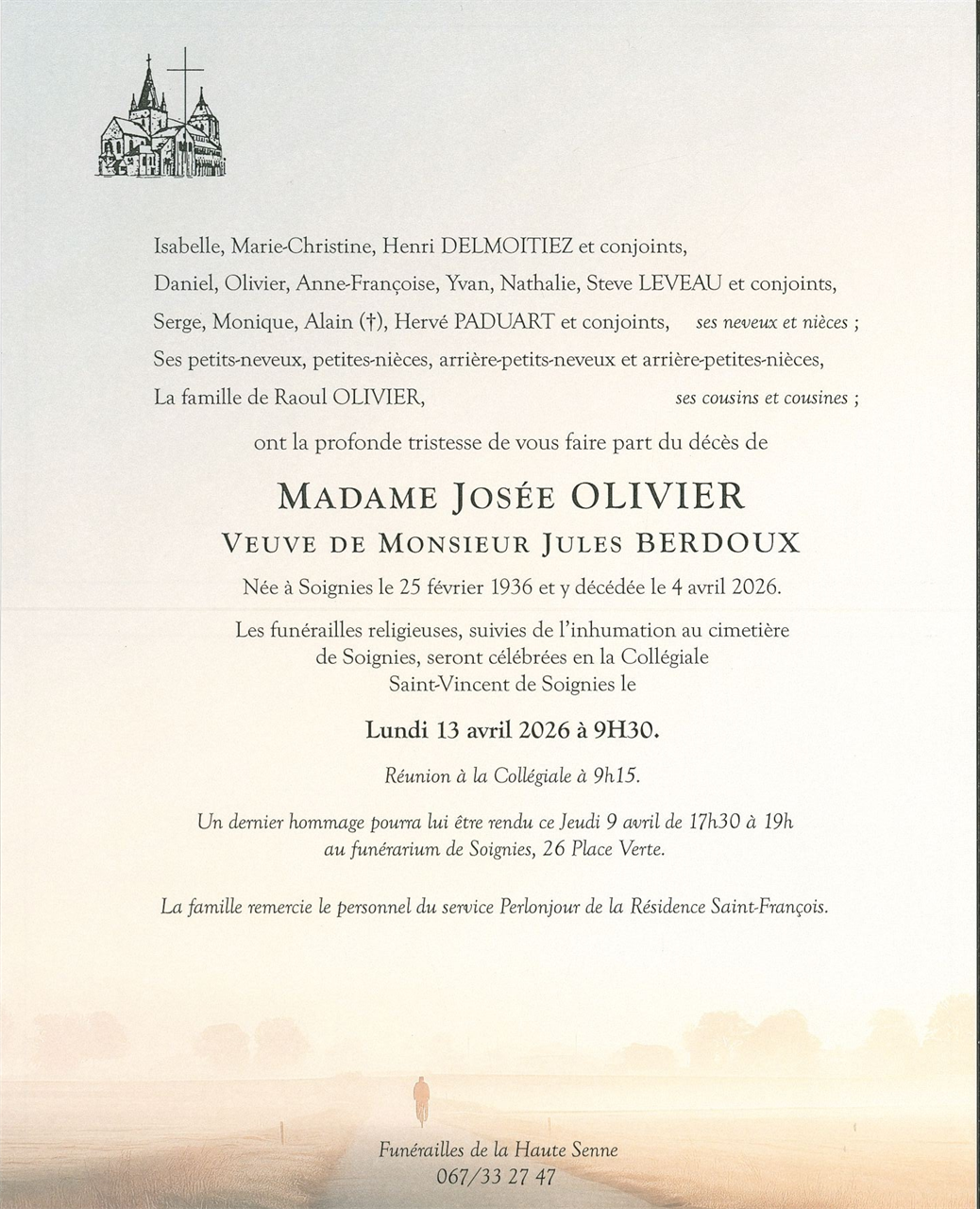 Died in Soignies (7060, Belgium) on 04 April 2026 at the age of 90 years