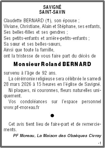 Veuf de Madame Claudette BERNARD