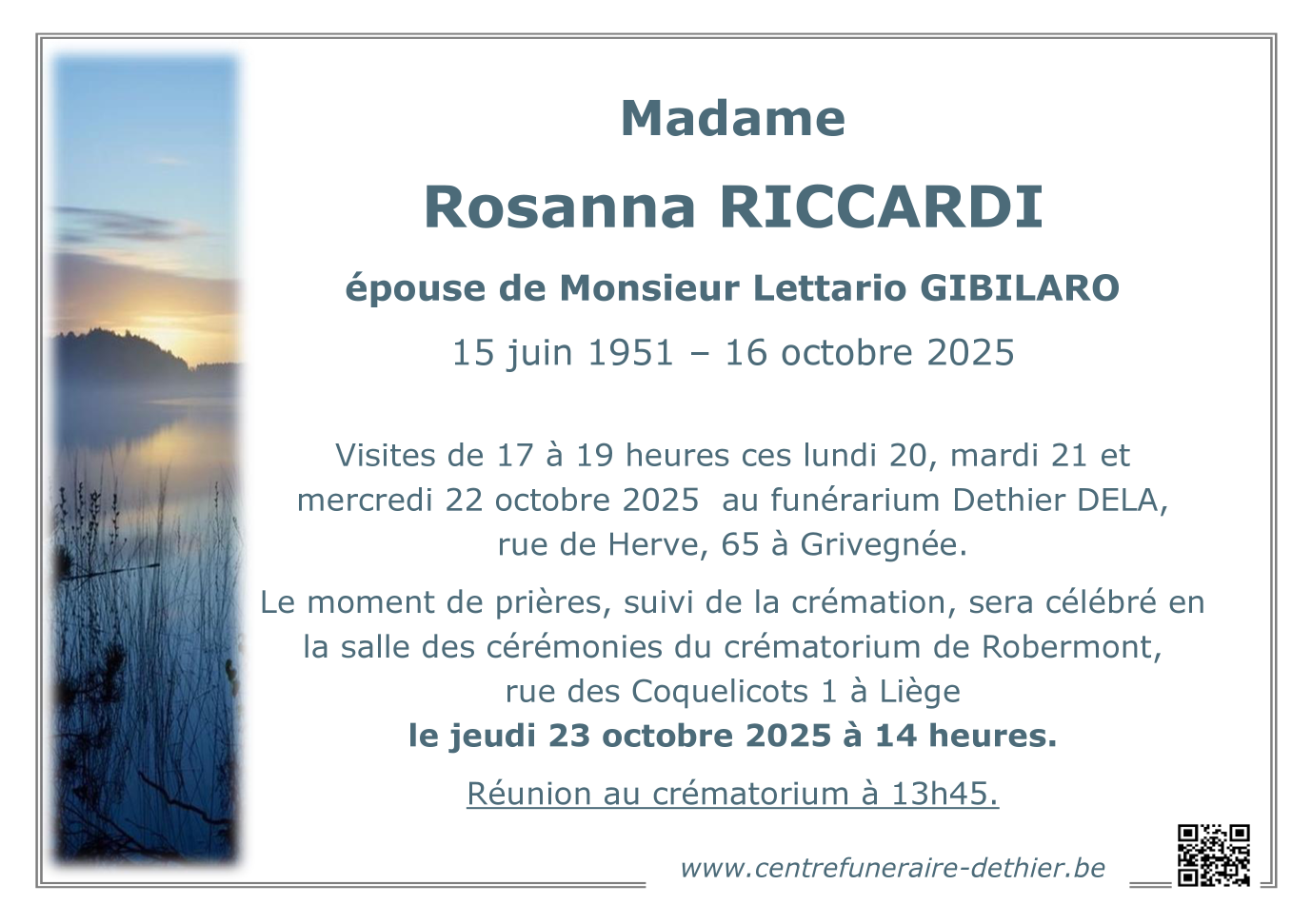 Décédée à Liège (4000, Belgique) le vendredi 17 octobre 2025 à l'âge de 74 ans