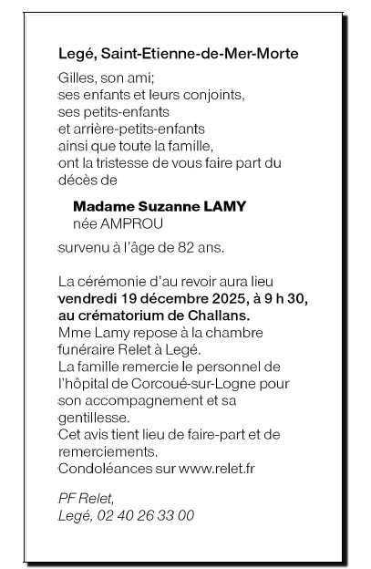 Décédée à Corcoué-sur-Logne (44650, France) le lundi 15 décembre 2025 à l'âge de 82 ans