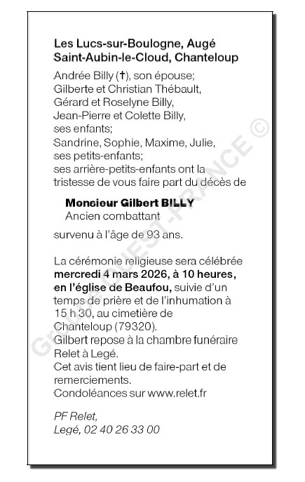 Fallecido en La Roche-sur-Yon (85000, Francia) el sábado, 28 de febrero de 2026 a la edad de 93 años