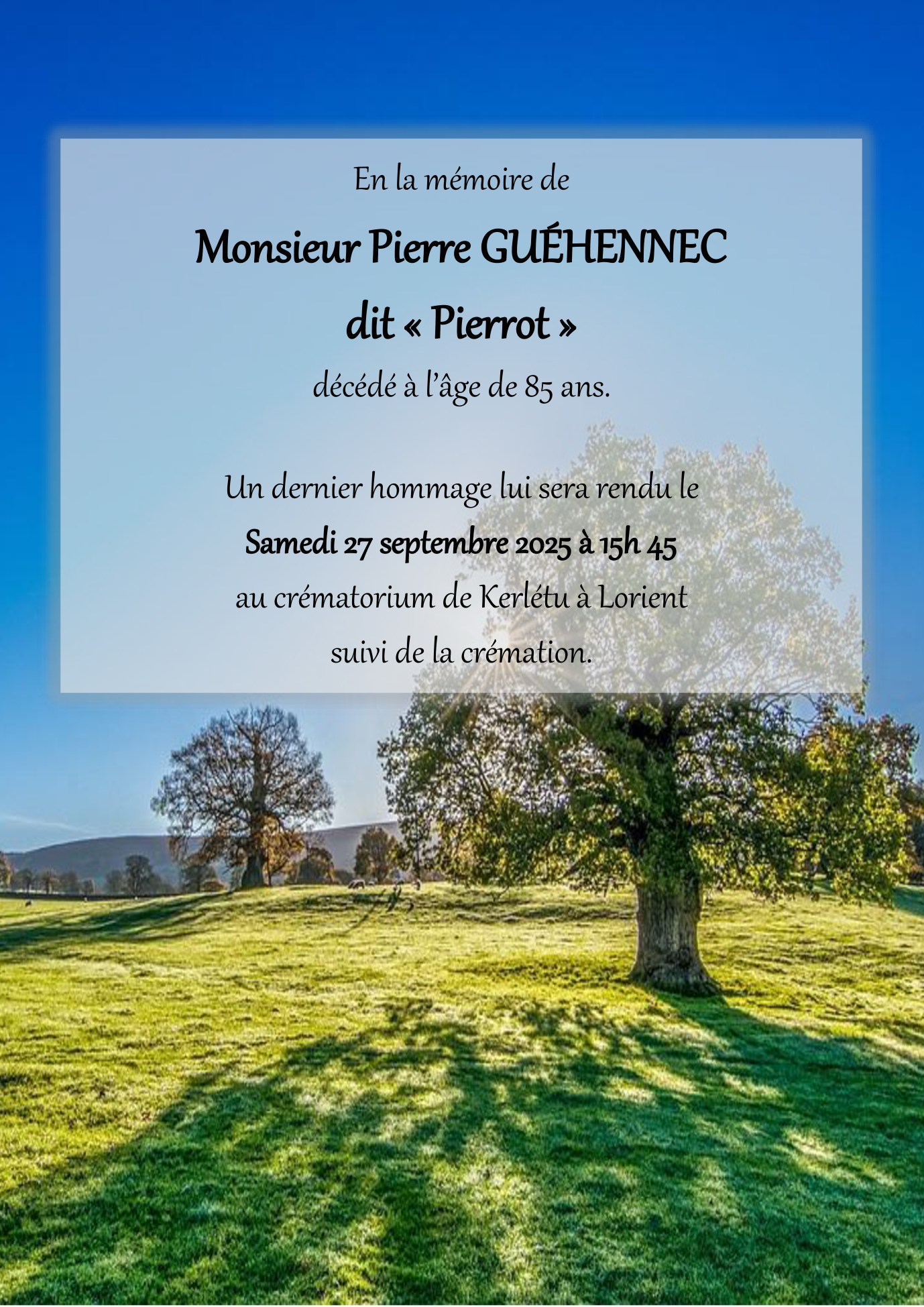 Décédé à Languidic (56440, France) le mardi 23 septembre 2025 à l'âge de 85 ans