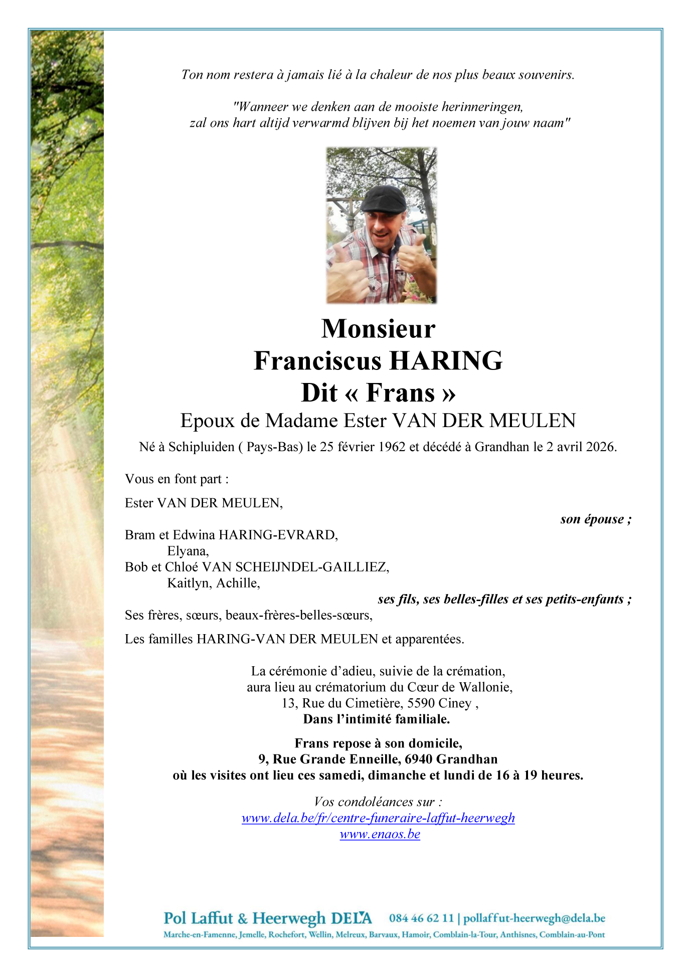 Décédé à Grandhan (6940, Belgique) le jeudi 2 avril 2026 à l'âge de 64 ans