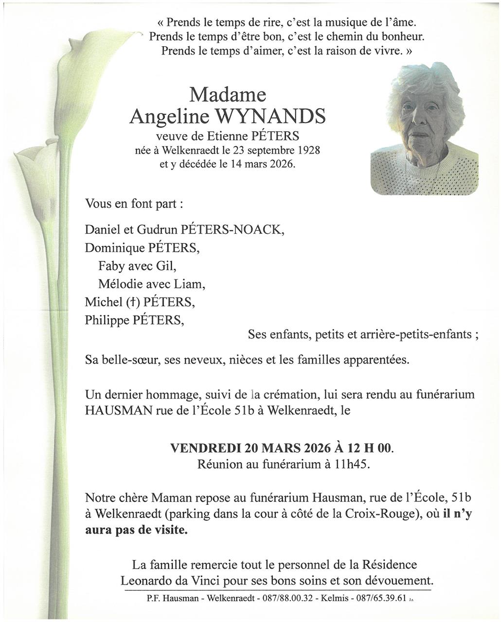 Died in Welkenraedt (4840, Belgium) on 14 March 2026 at the age of 97 years