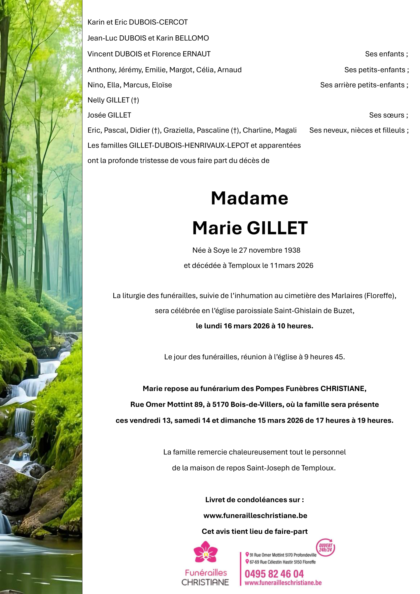 Overleden te Temploux (5020, België) op woensdag 11 maart 2026 op 87-jarige leeftijd