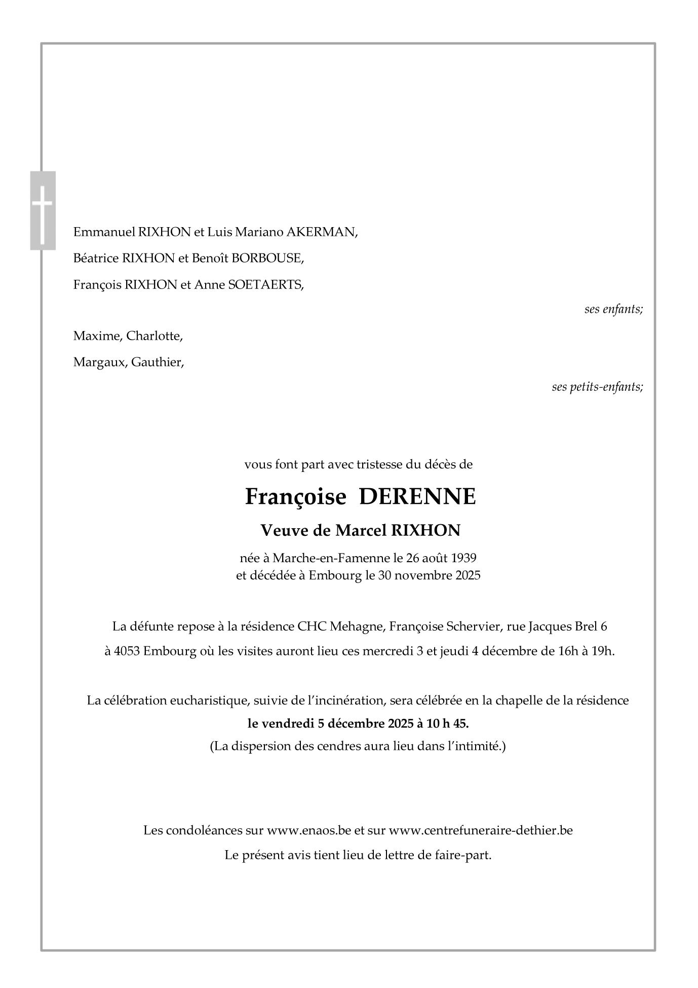Fallecida en Embourg (4053, Bélgica) el domingo, 30 de noviembre de 2025 a la edad de 86 años