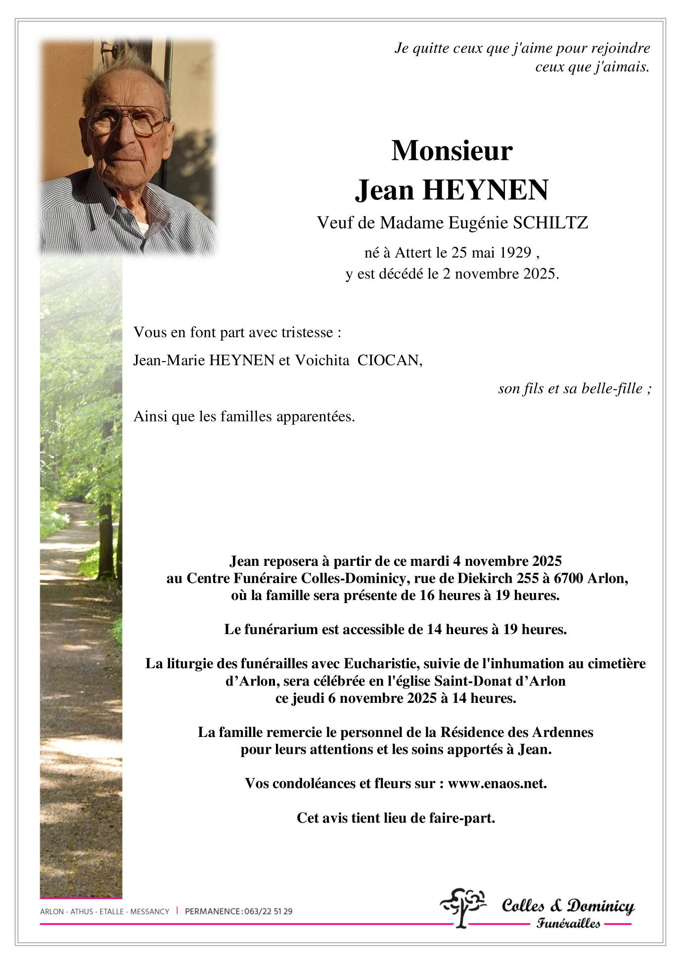Décédé à Attert (6717, Belgique) le dimanche 2 novembre 2025 à l'âge de 96 ans
