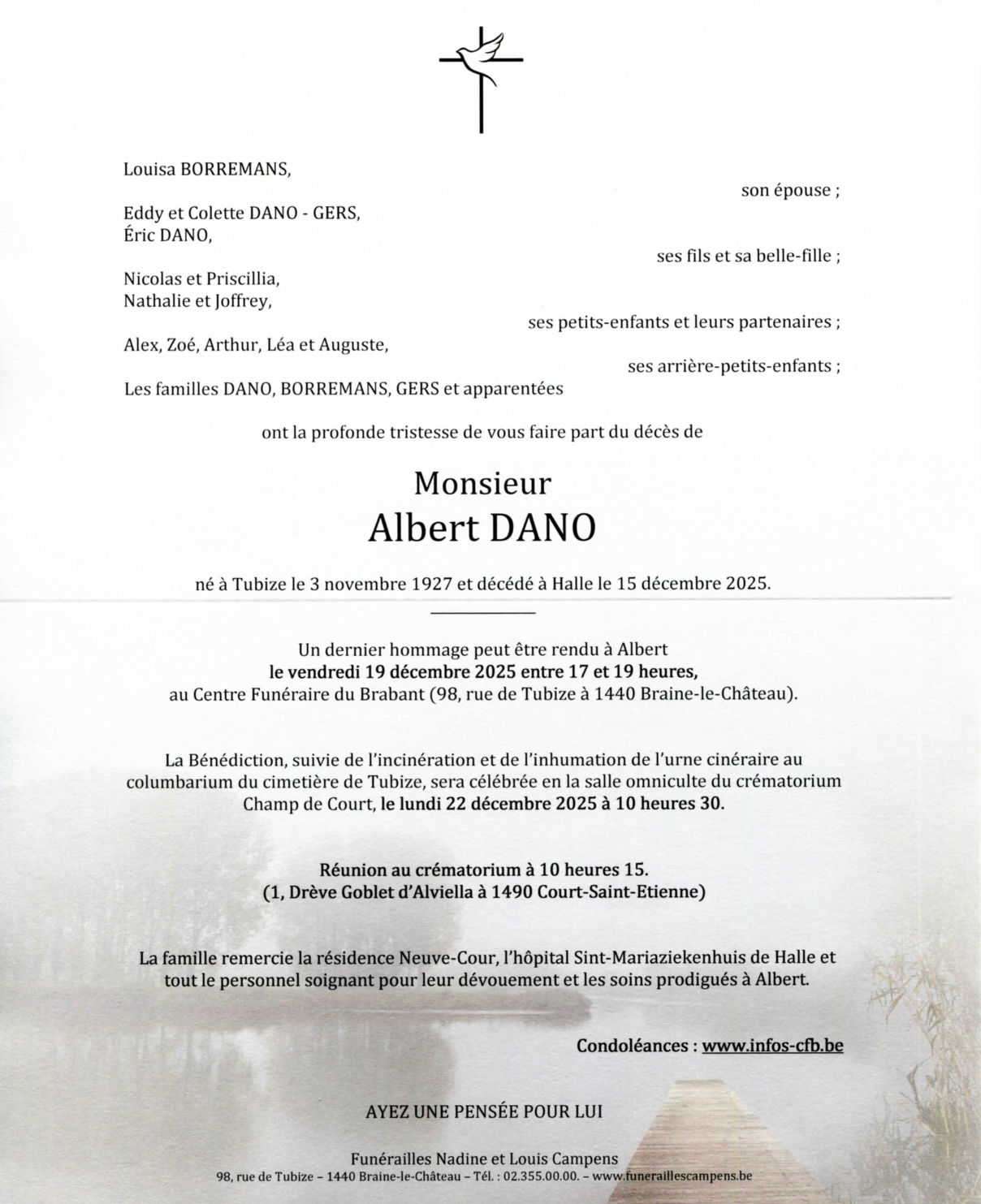 Fallecido en Halle (1500, Bélgica) el lunes, 15 de diciembre de 2025 a la edad de 98 años