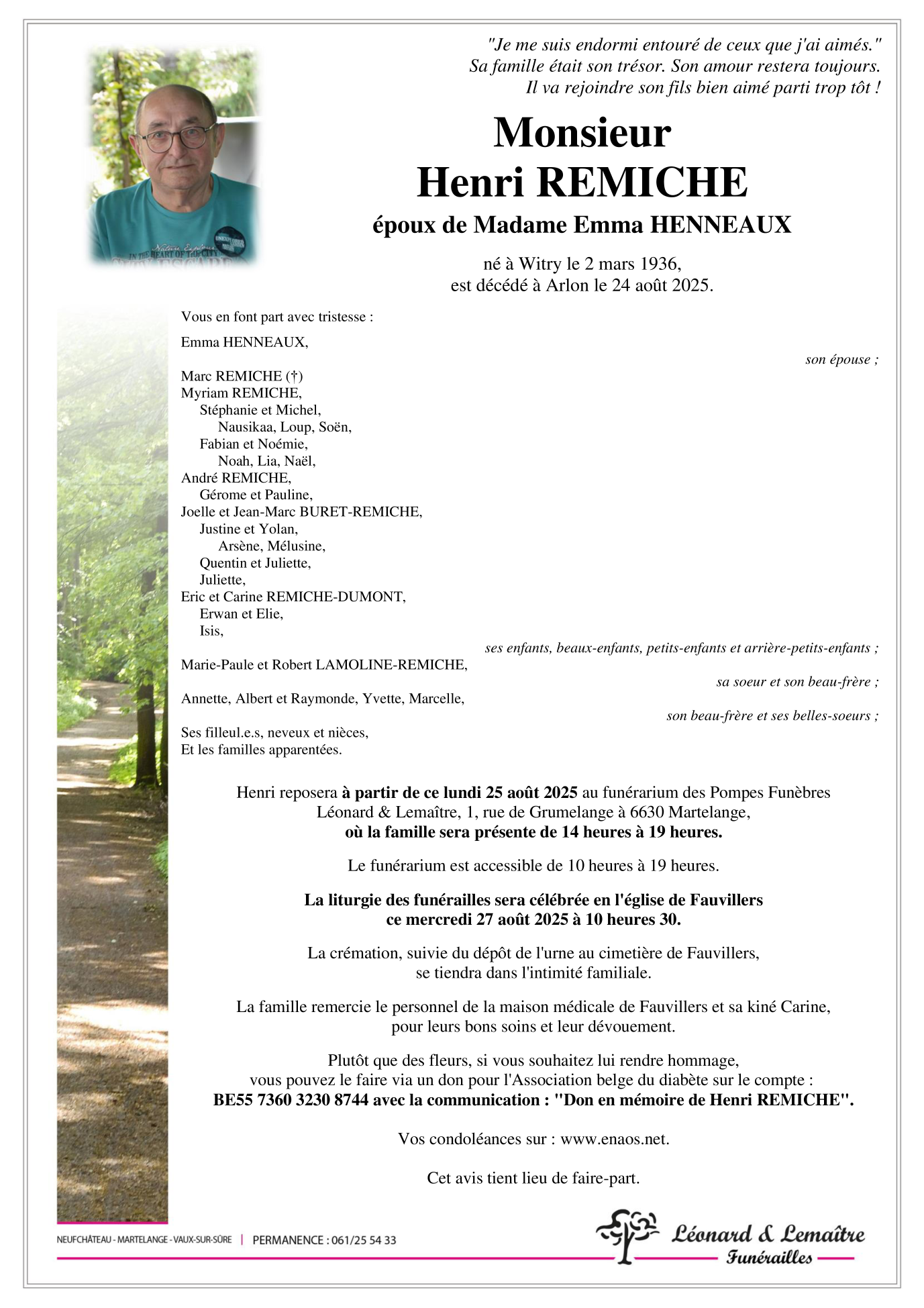 Overleden te Arlon (6700, België) op zondag 24 augustus 2025 op 89-jarige leeftijd