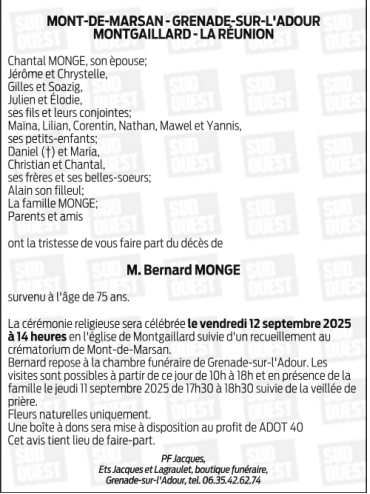 Décédé à Mont-de-Marsan (40000, France) le mardi 9 septembre 2025 à l'âge de 75 ans
