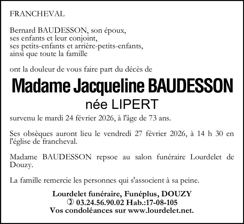 Madame Jacqueline BAUDESSON geboren LIPERT