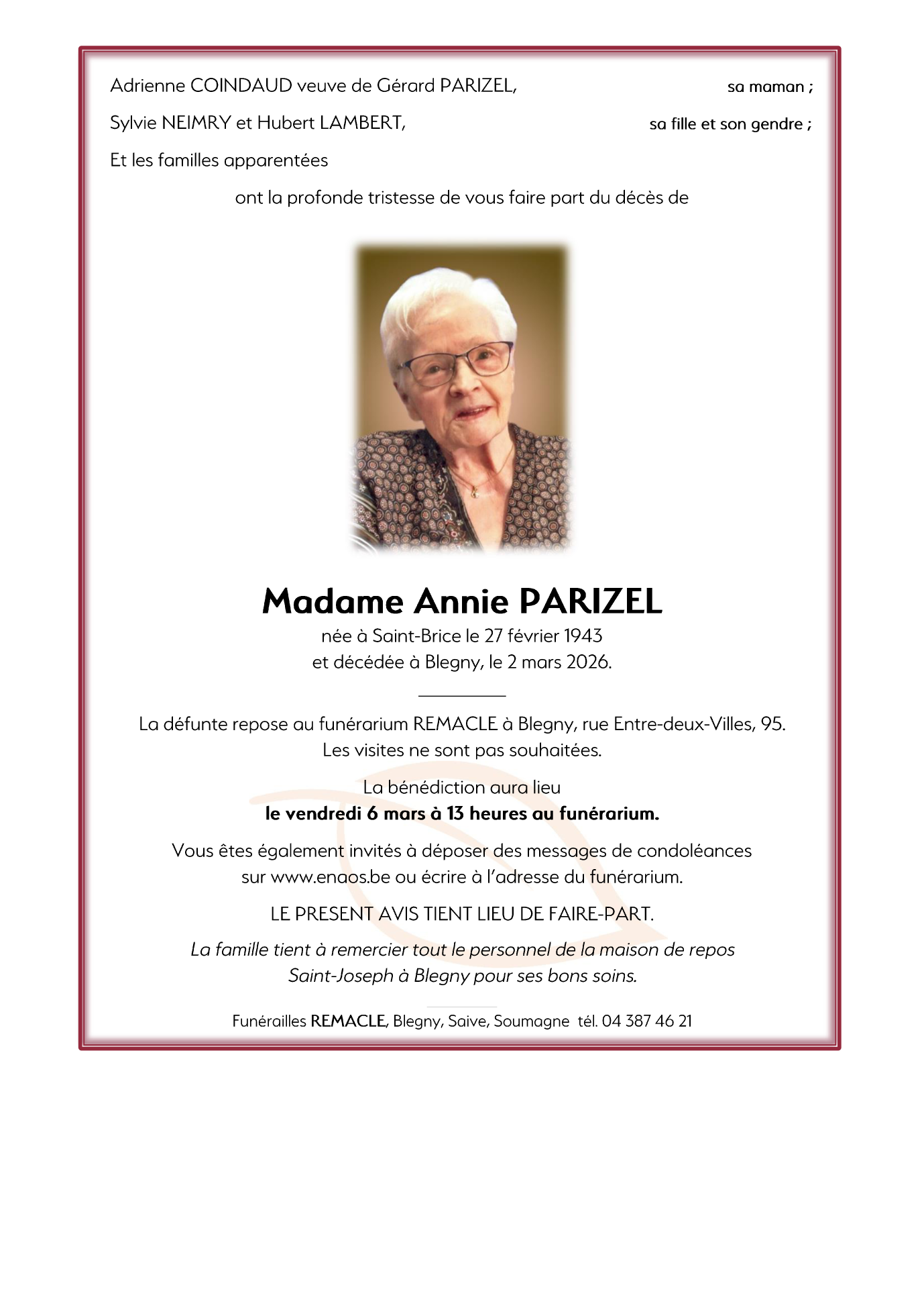 Madame Annie PARIZEL