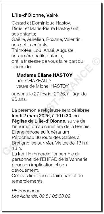 Madame Eliane HASTOY née CHAZEAUD