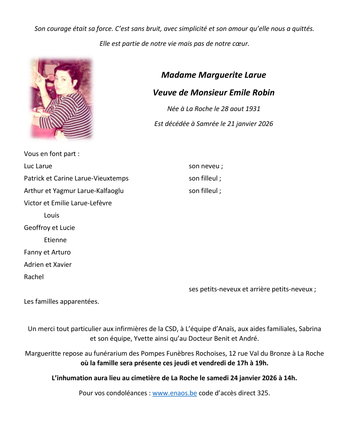 Overleden te Samrée (6982, België) op woensdag 21 januari 2026 op 94-jarige leeftijd