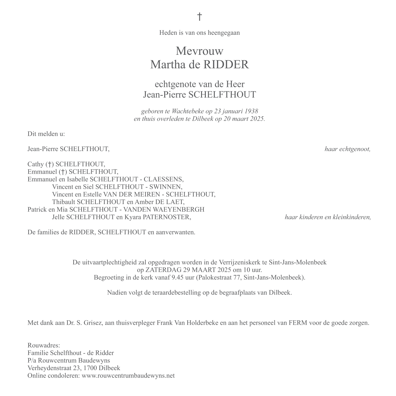 Died in Dilbeek (1700, Belgium) on 20 March 2025 at the age of 87 years
