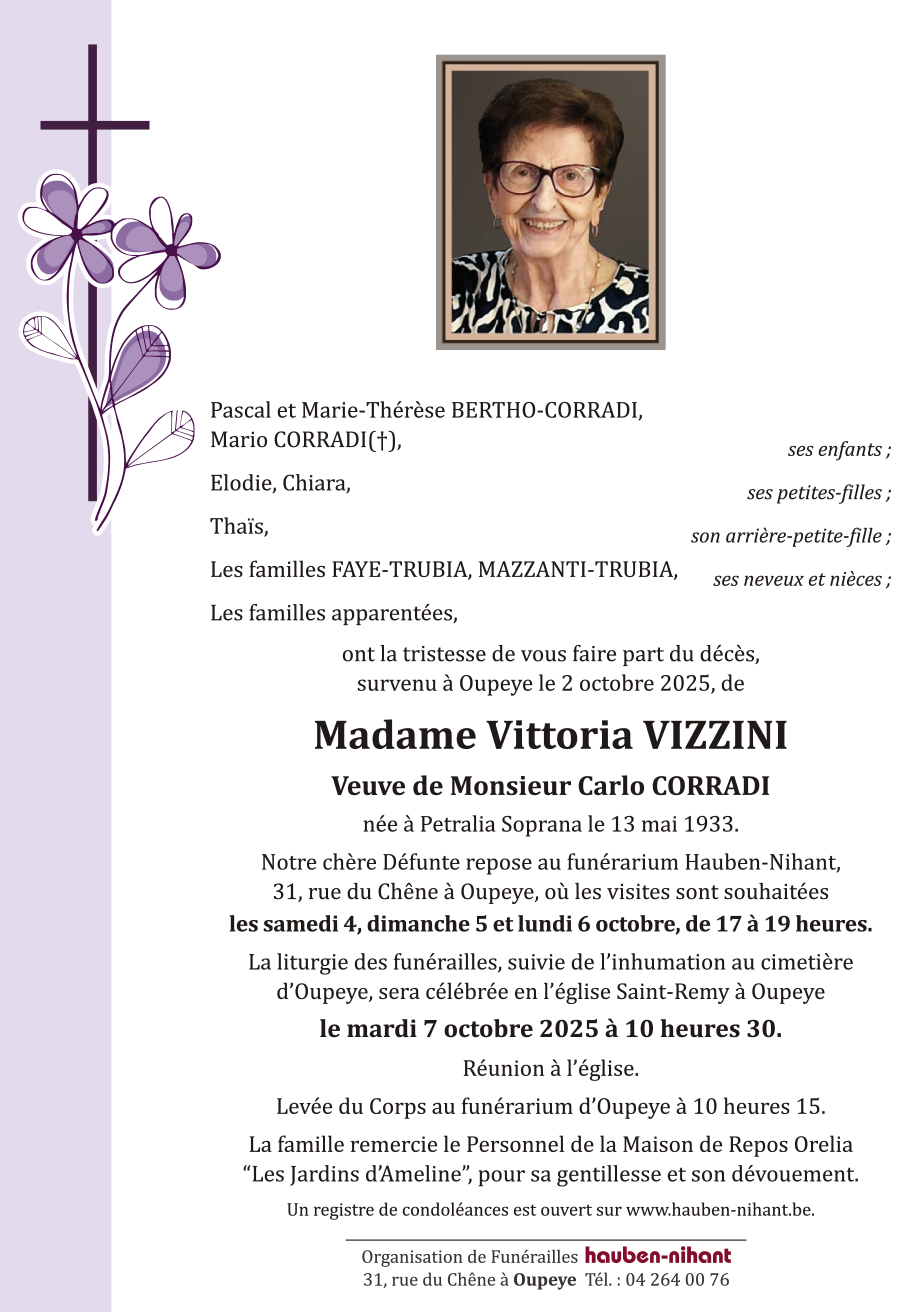 Fallecida en Oupeye (4680, Bélgica) el jueves, 2 de octubre de 2025 a la edad de 92 años