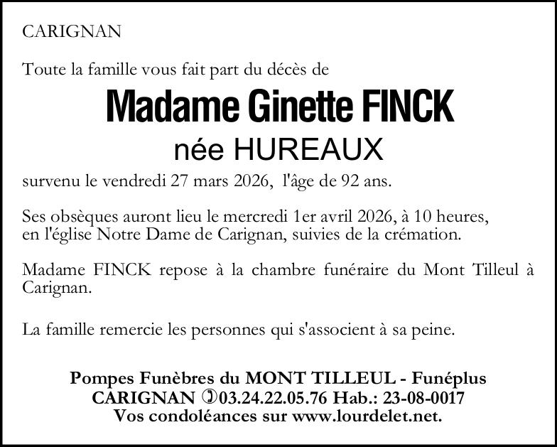 Décédée à Carignan (08110, France) le vendredi 27 mars 2026 à l'âge de 92 ans