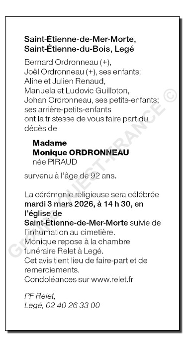 Mevrouw Monique ORDRONNEAU geboren PIRAUD