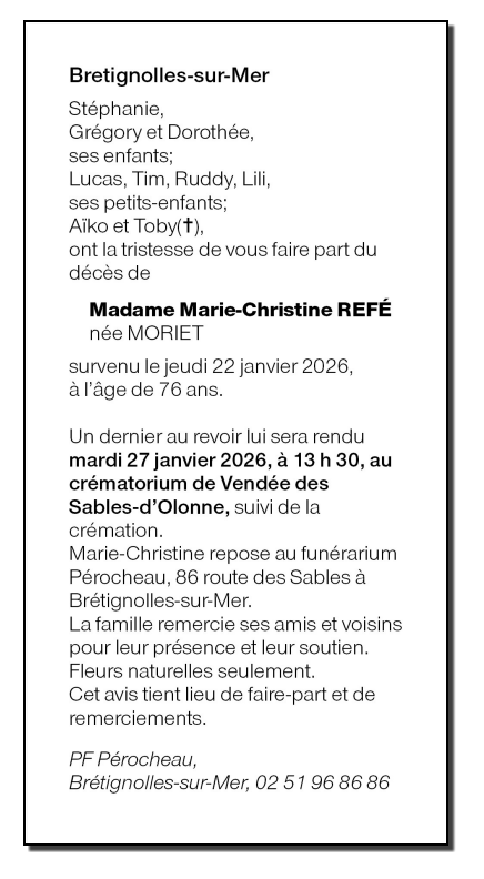 Overleden te Bretignolles-sur-Mer (85470, Frankrijk) op donderdag 22 januari 2026 op 76-jarige leeftijd