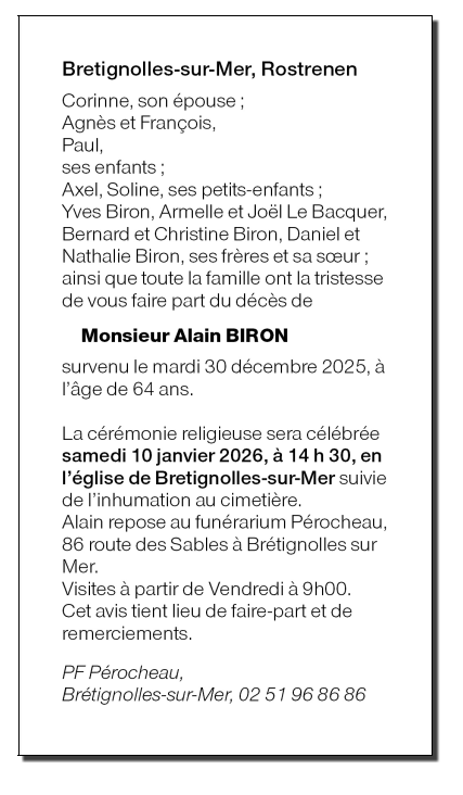 Echtgenoot van Madame Corinne BIRON née CALVEZ