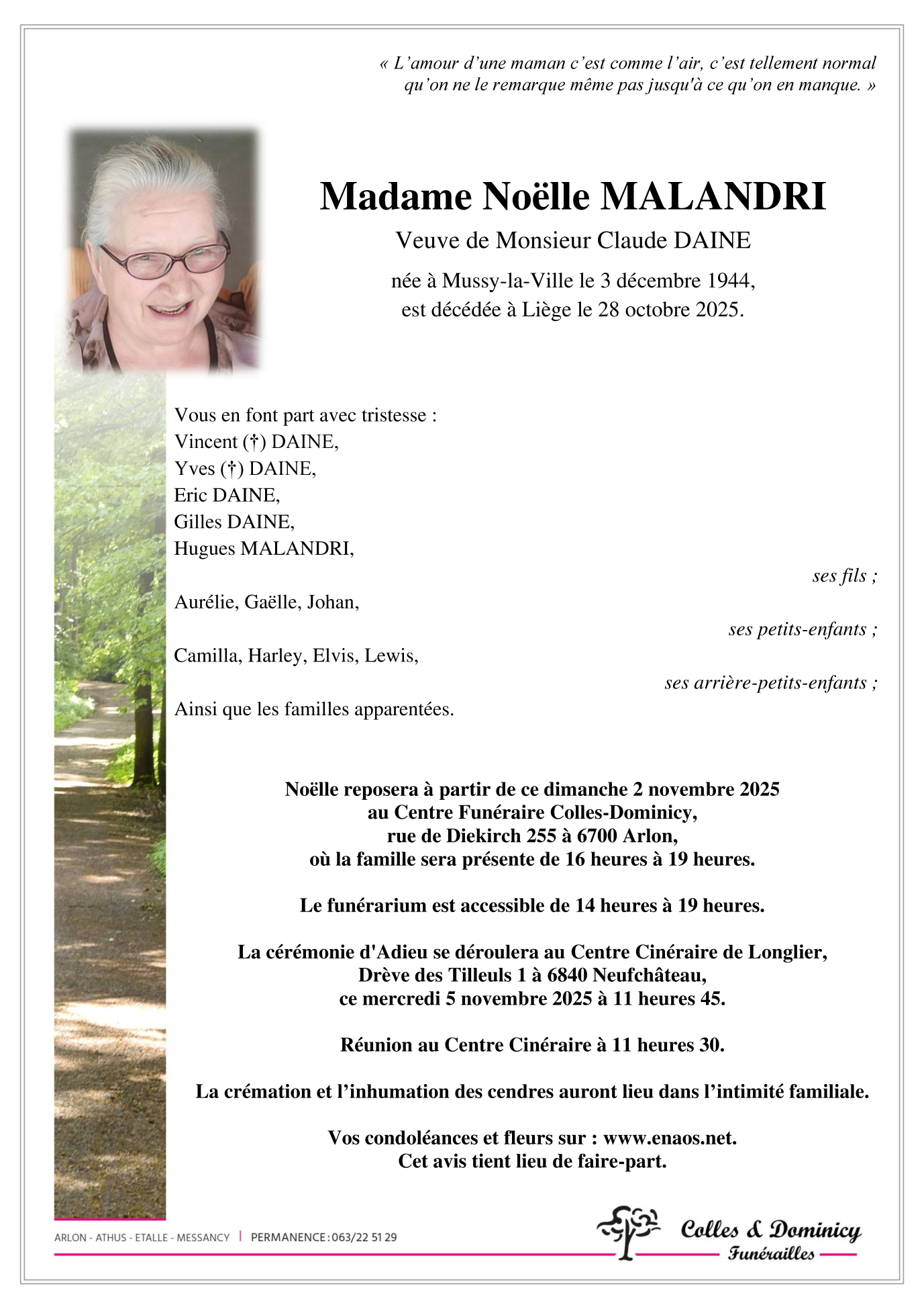 Décédée à Liège (4000, Belgique) le mardi 28 octobre 2025 à l'âge de 80 ans