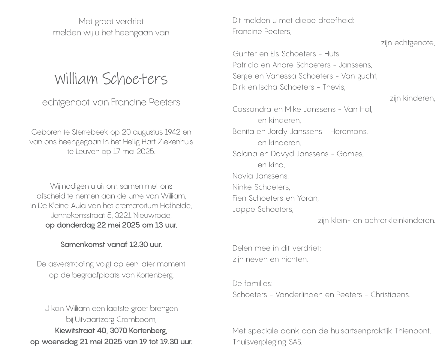 Epoux de Mevrouw Francine Peeters