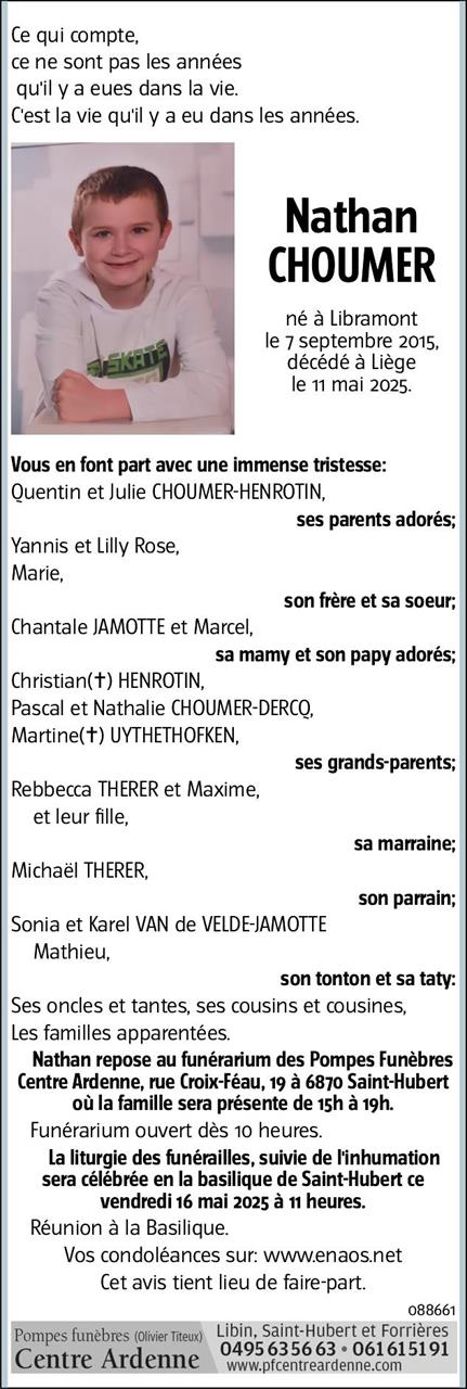 Décédé à Liège (4000, Belgique) le dimanche 11 mai 2025 à l'âge de 9 ans