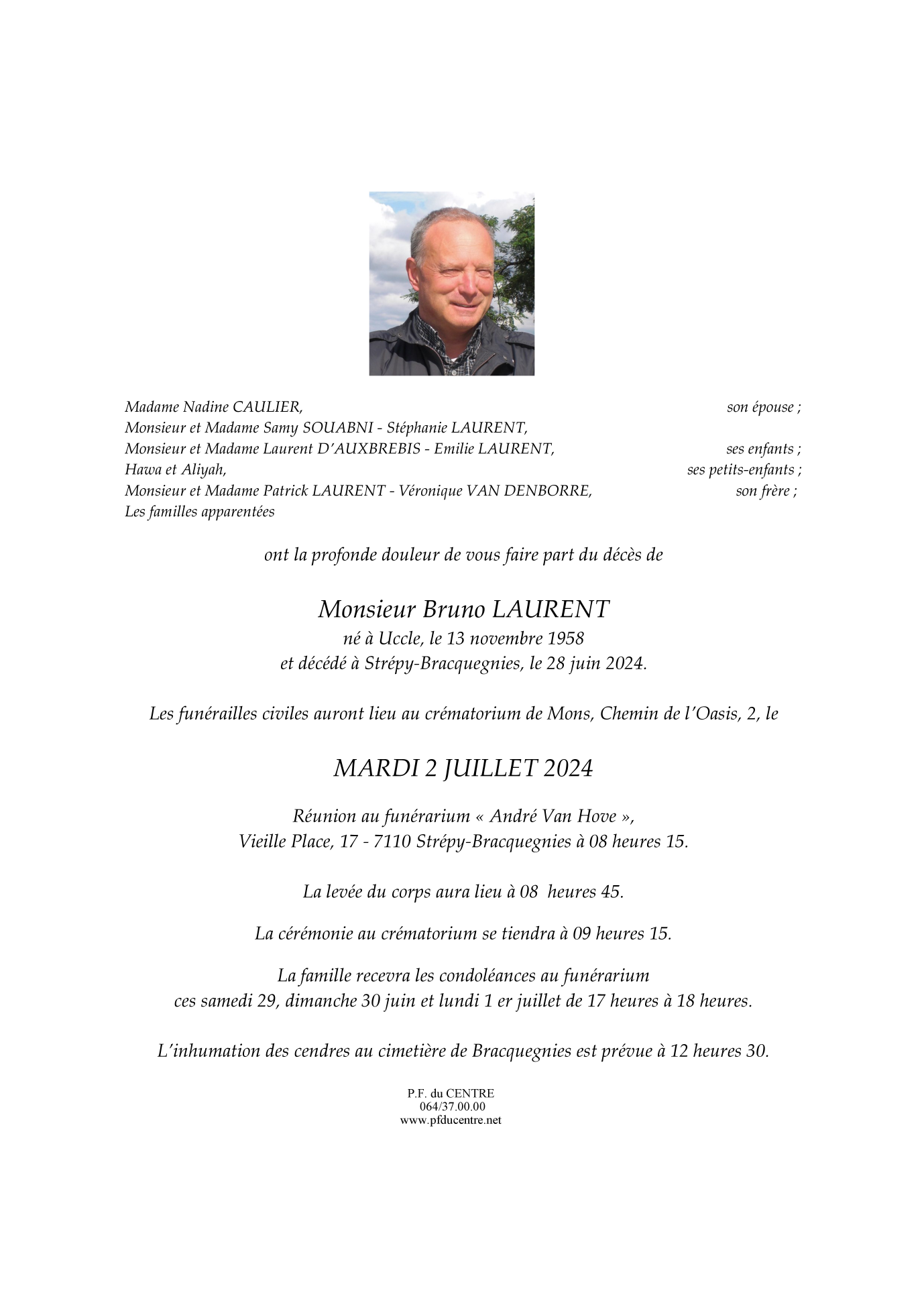 Overleden te Strépy-Bracquegnies (7110, België) op vrijdag 28 juni 2024 op 65-jarige leeftijd