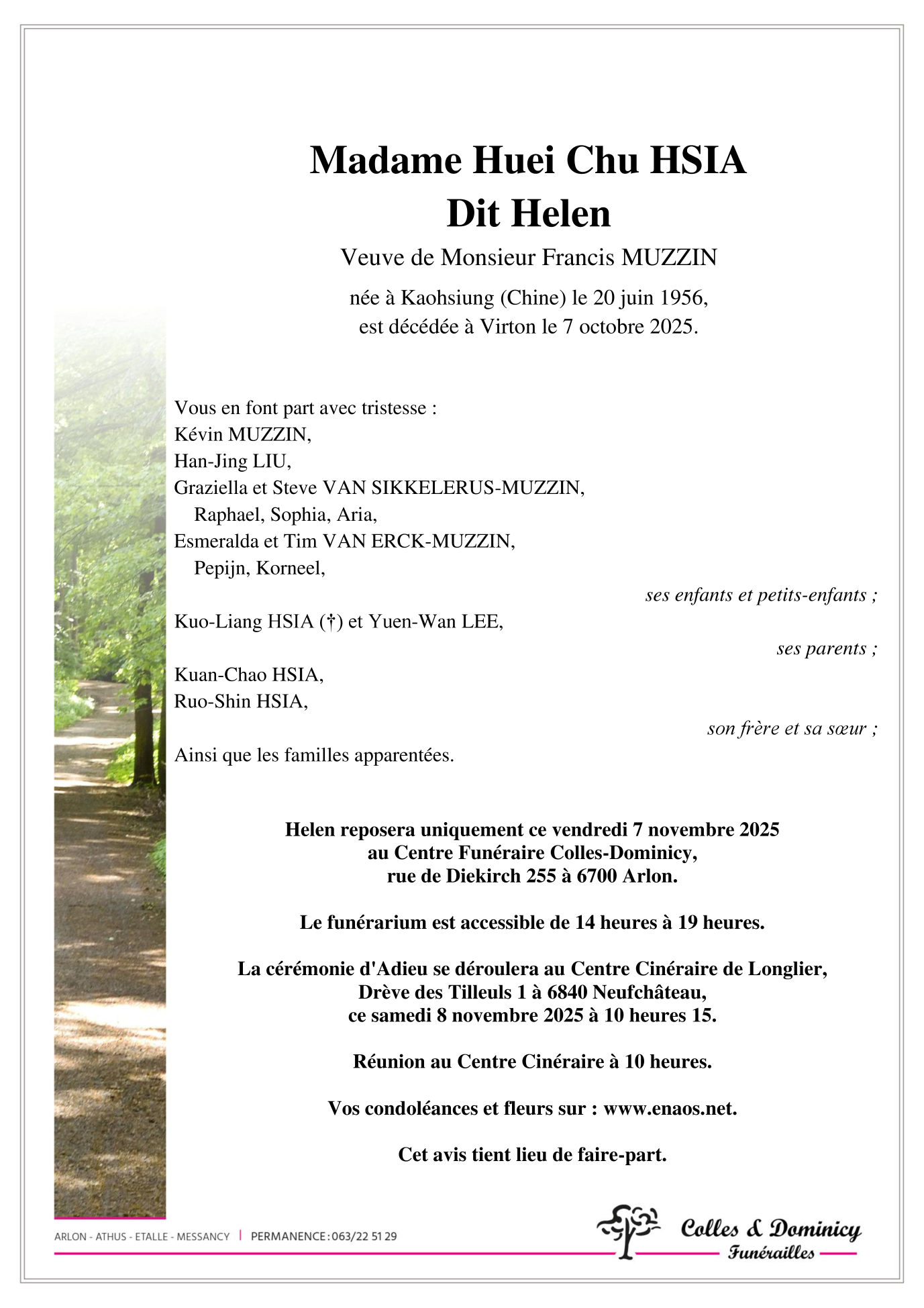 Fallecida en Saint-Mard (6762, Bélgica) el martes, 7 de octubre de 2025 a la edad de 69 años