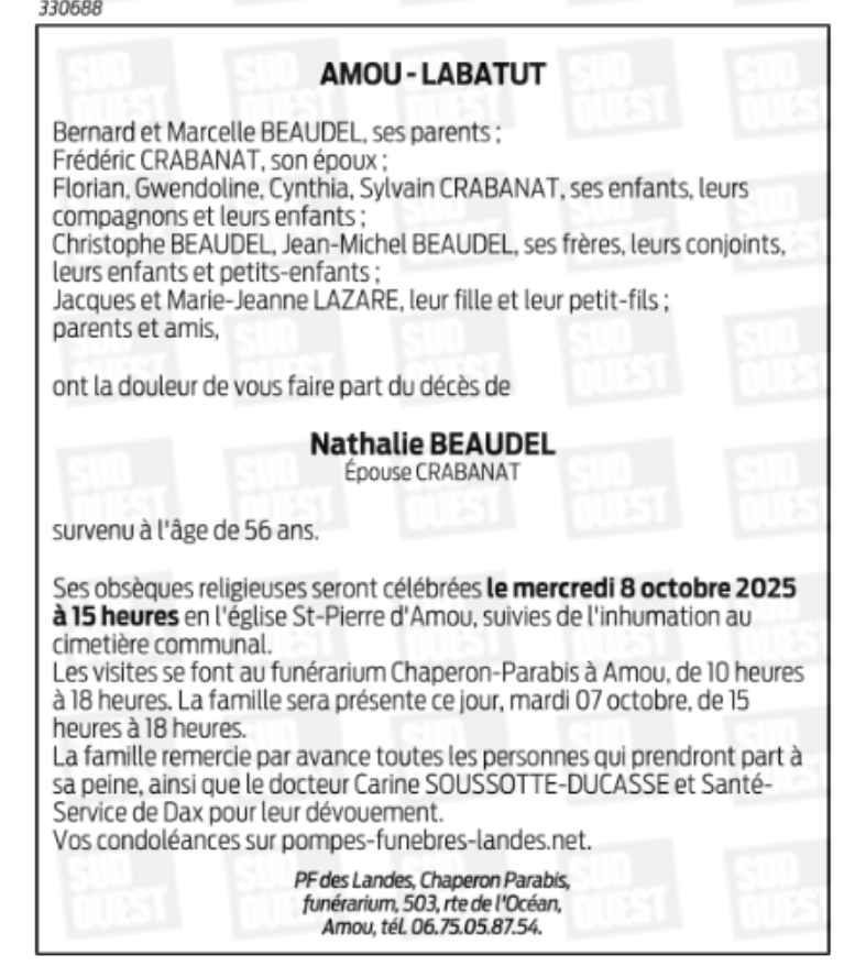 Overleden te Ossages (40290, Frankrijk) op zondag 5 oktober 2025 op 56-jarige leeftijd