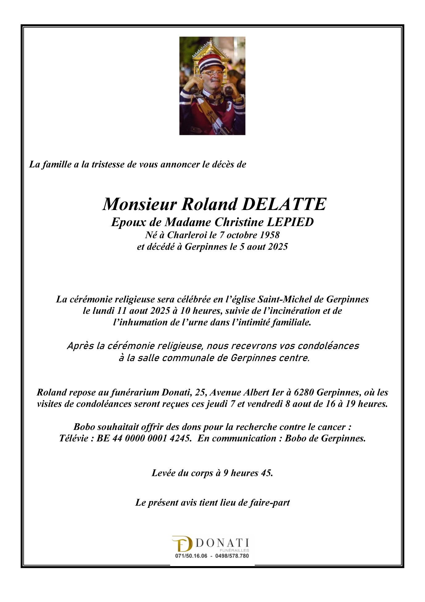 Died in Gerpinnes (6280, Belgium) on 05 August 2025 at the age of 66 years