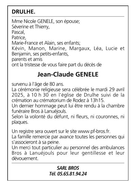 Overleden te Villefranche-de-Rouergue (12200, Frankrijk) op vrijdag 25 april 2025 op 80-jarige leeftijd