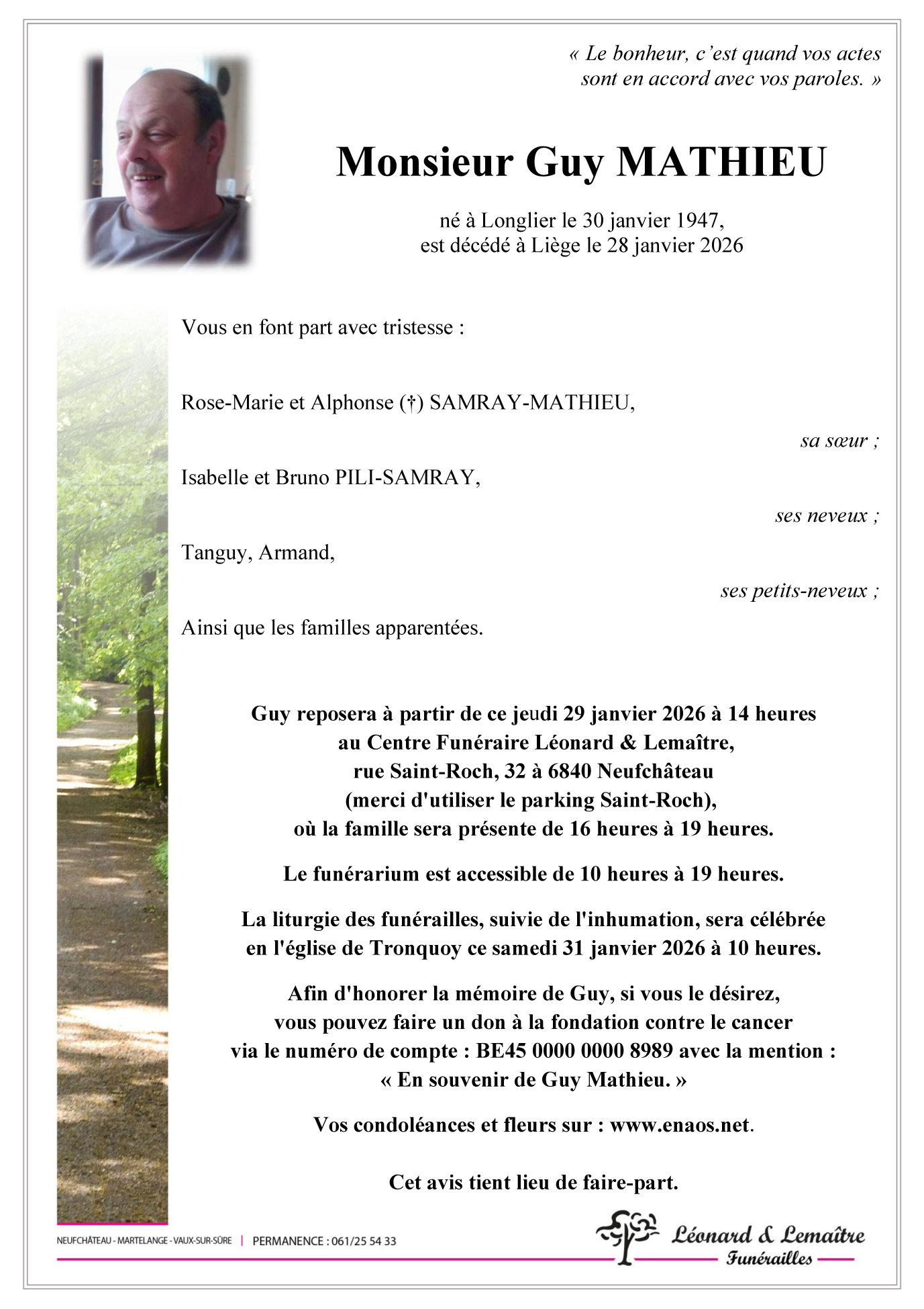 Overleden te Liège (4000, België) op woensdag 28 januari 2026 op 78-jarige leeftijd