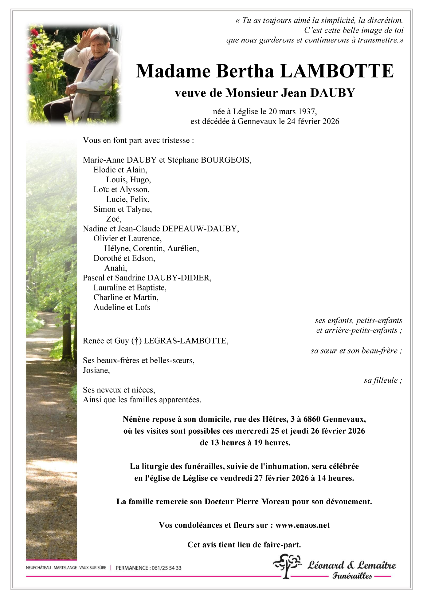 Madame Bertha LAMBOTTE