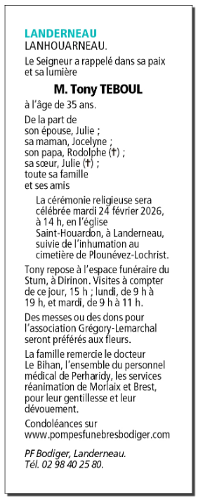 Décédé à Brest (29200, France) le vendredi 20 février 2026 à l'âge de 35 ans