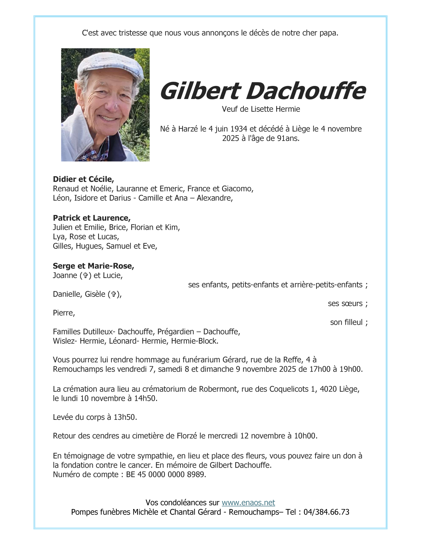 Décédé à Liège (4000, Belgique) le mardi 4 novembre 2025 à l'âge de 91 ans