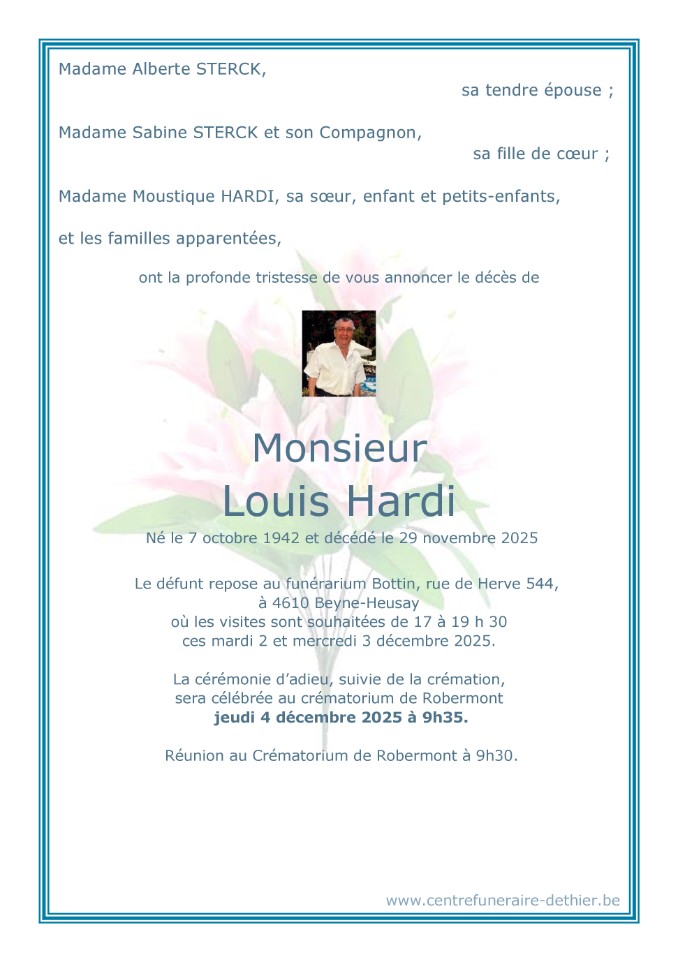 Décédé à Liège (4000, Belgique) le samedi 29 novembre 2025 à l'âge de 83 ans