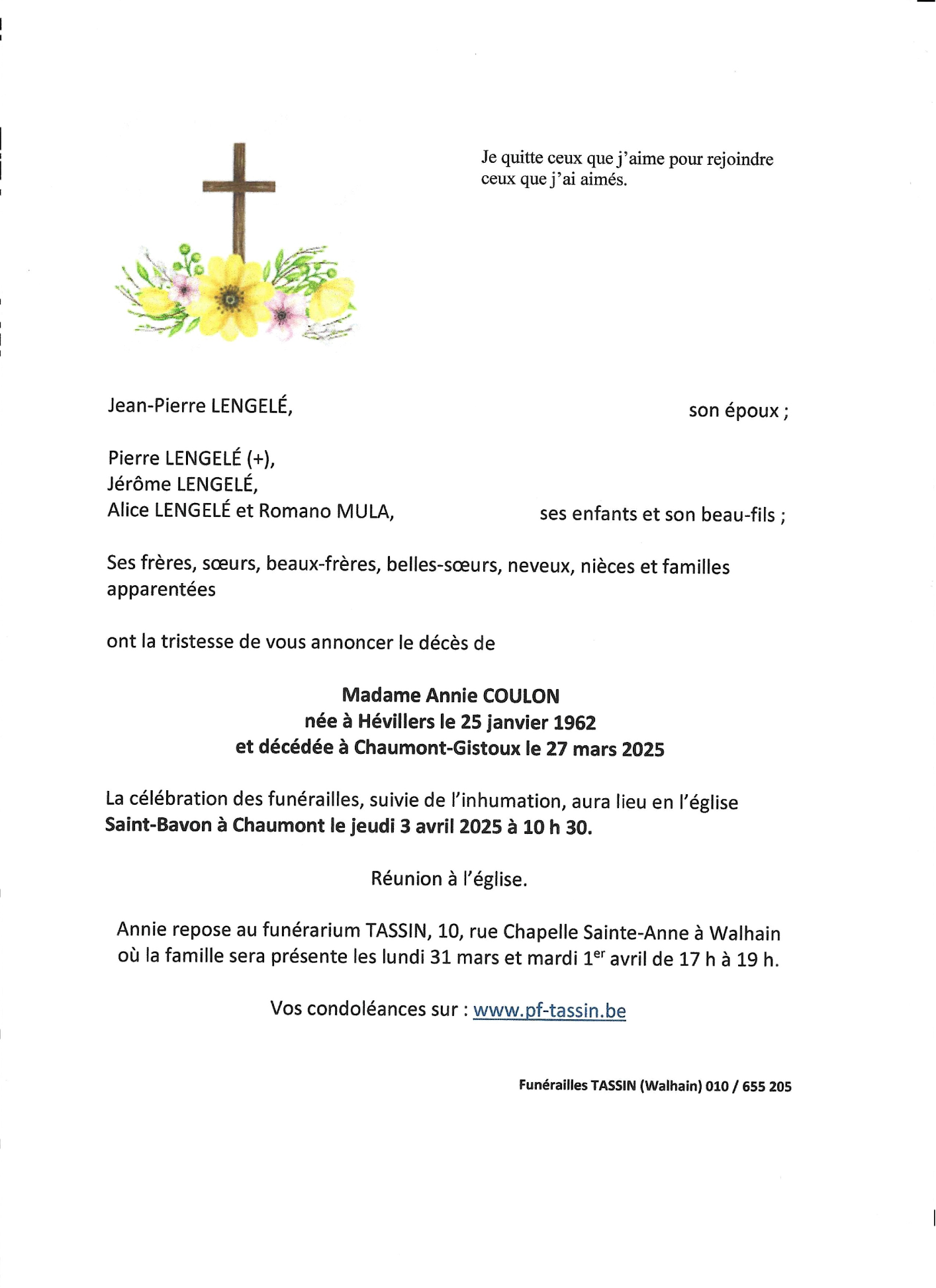Overleden te Bonlez (1325, België) op donderdag 27 maart 2025 op 63-jarige leeftijd