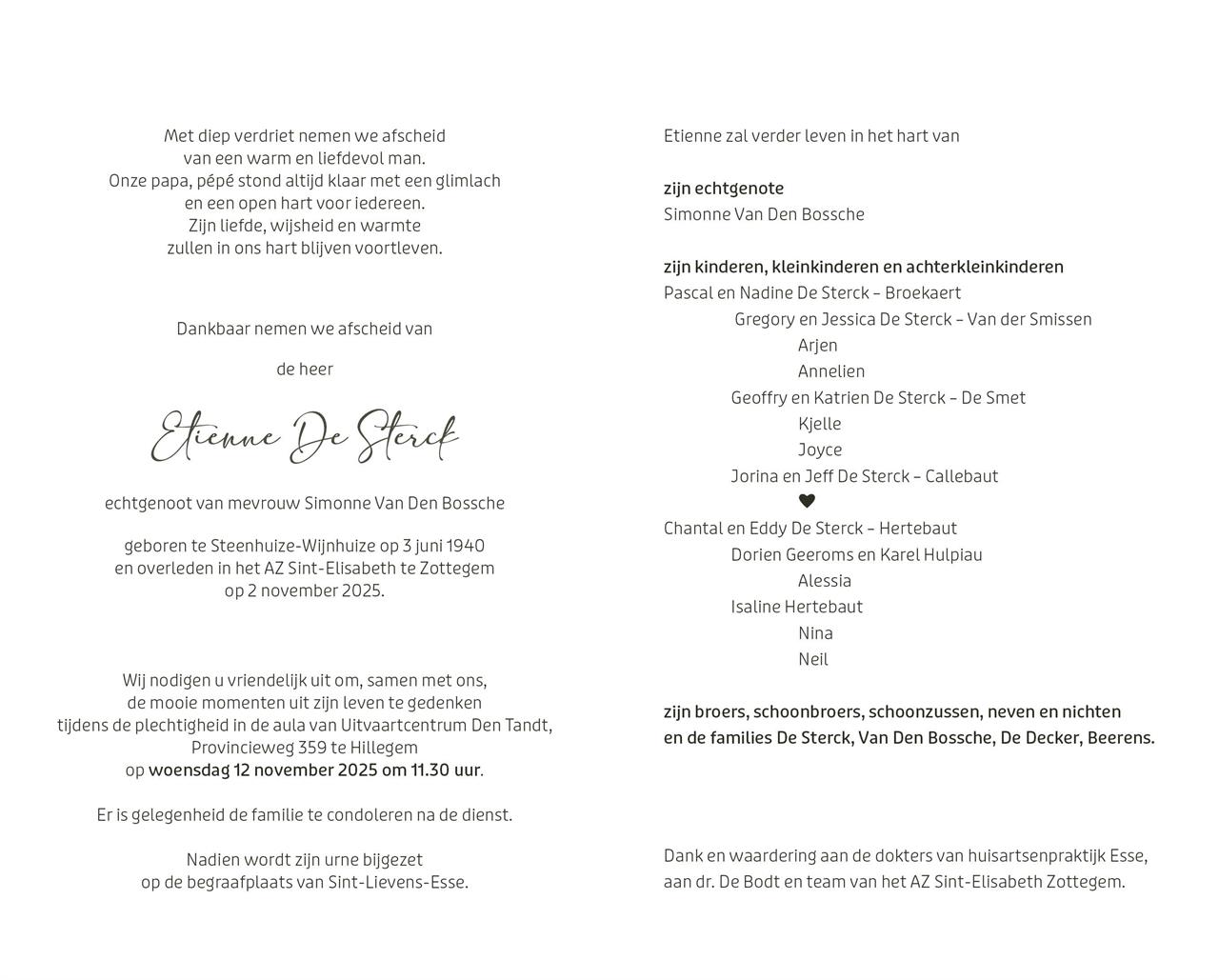 Overleden te Zottegem (9620, België) op zondag 2 november 2025 op 85-jarige leeftijd
