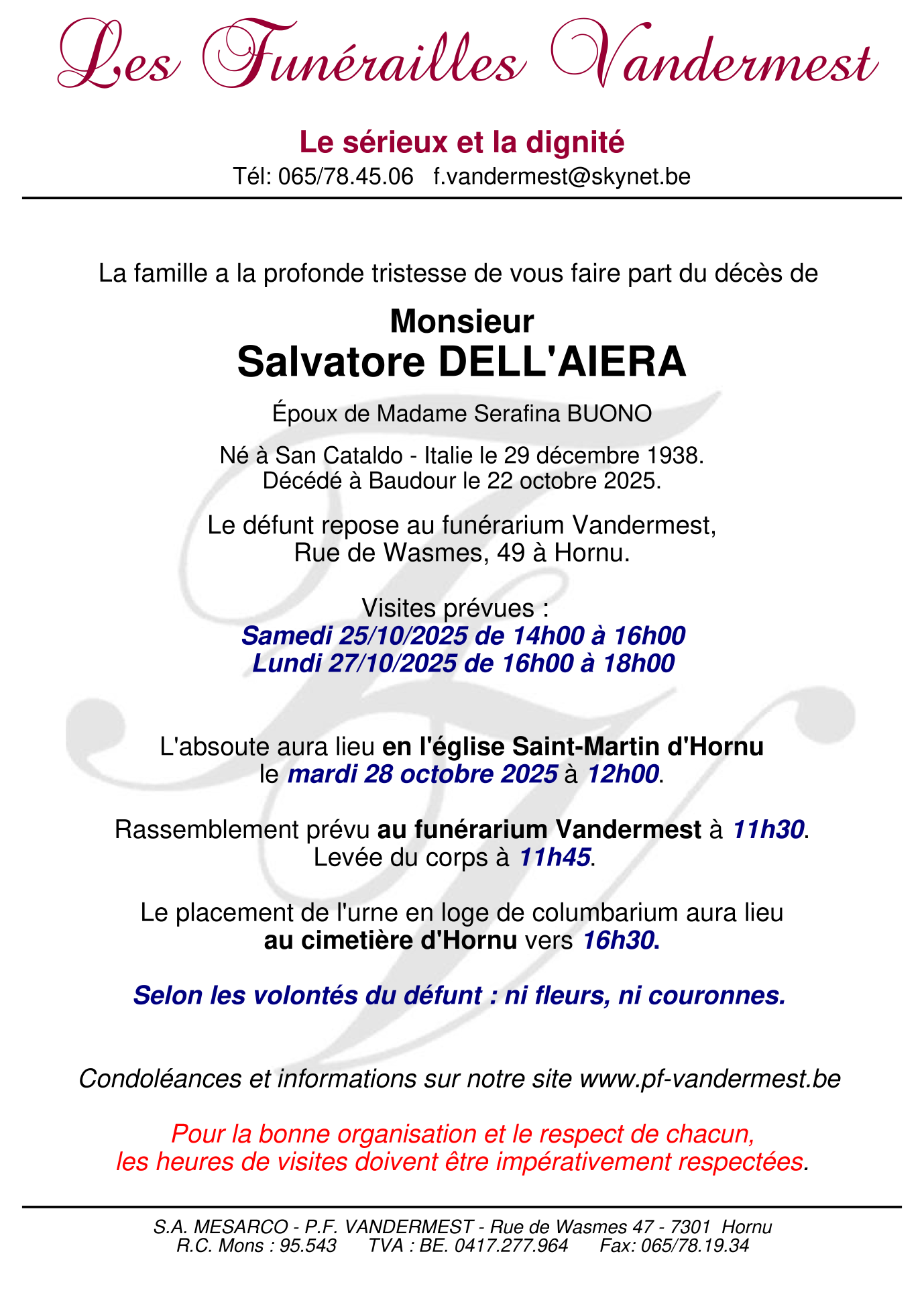 Died in Baudour (7331, Belgium) on 22 October 2025 at the age of 86 years