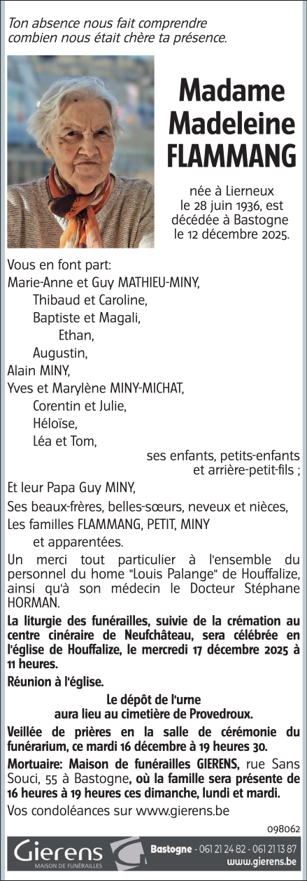 Overleden te Bastogne (6600, België) op vrijdag 12 december 2025 op 89-jarige leeftijd