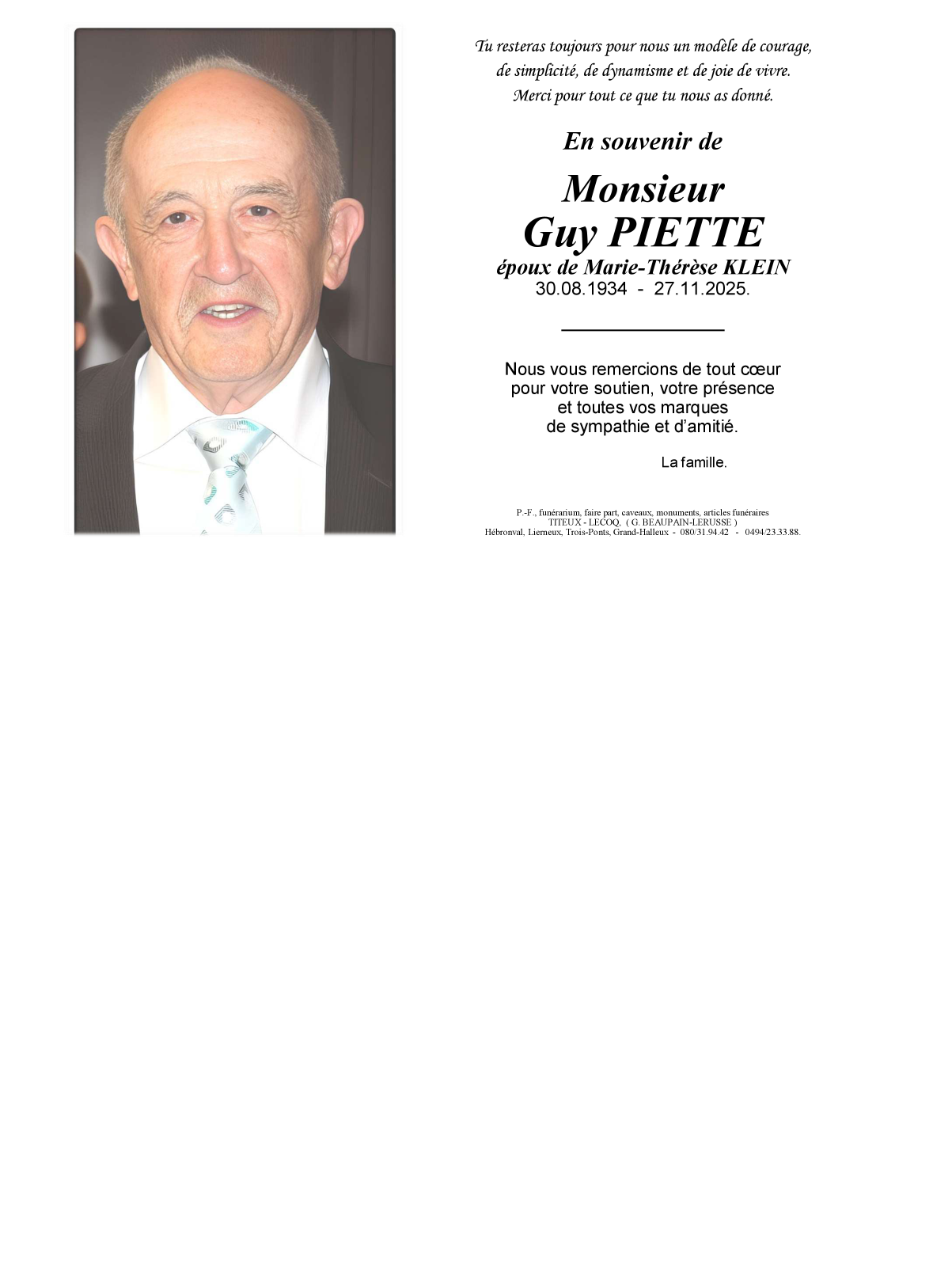 Décédé à Bellevaux-Ligneuville (4960, Belgique) le jeudi 27 novembre 2025 à l'âge de 91 ans