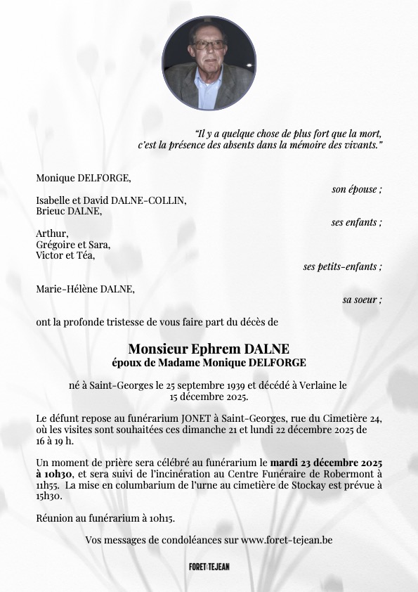 Décédé à Verlaine (4537, Belgique) le lundi 15 décembre 2025 à l'âge de 86 ans