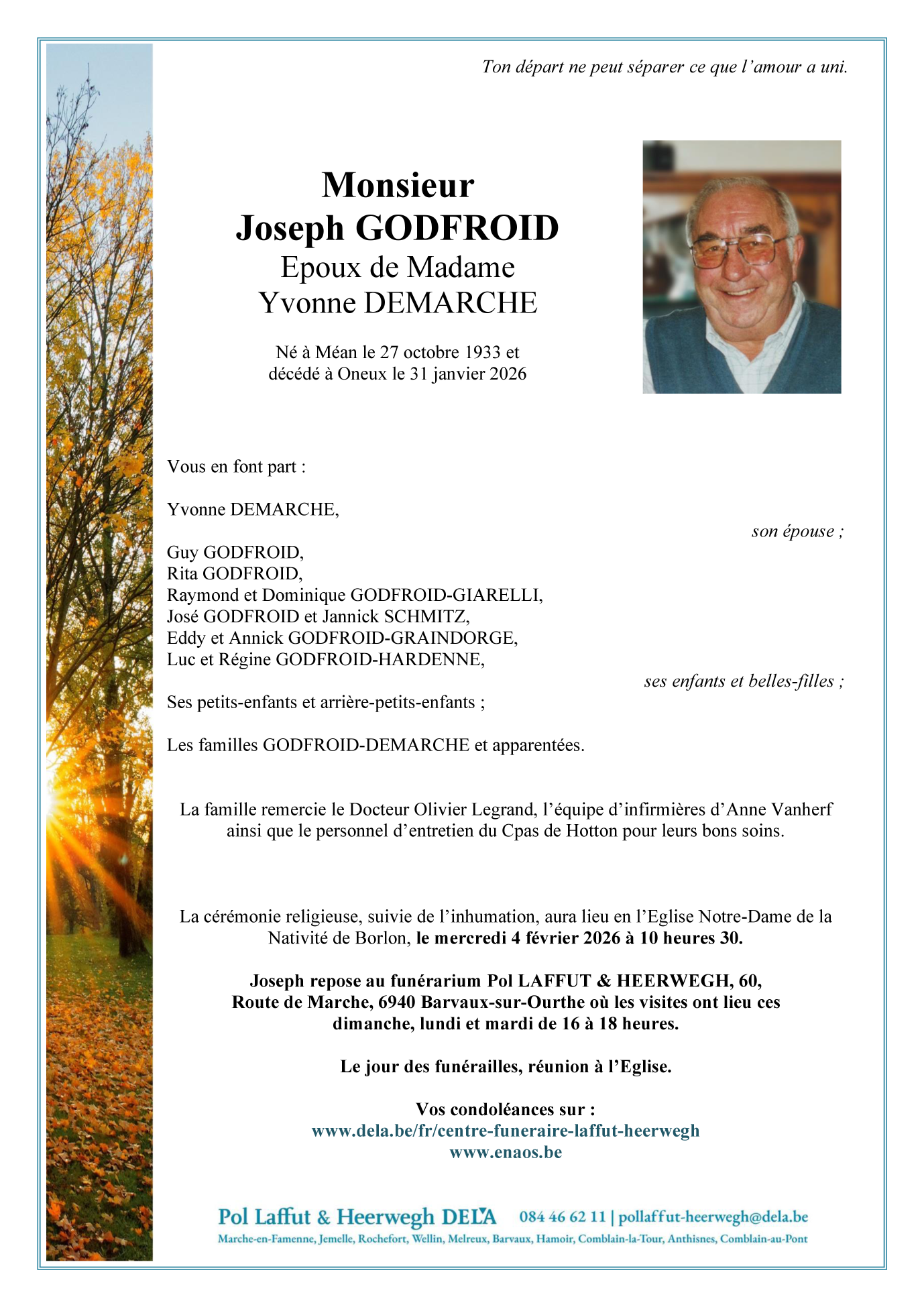 Décédé à Borlon (6941, Belgique) le samedi 31 janvier 2026 à l'âge de 92 ans