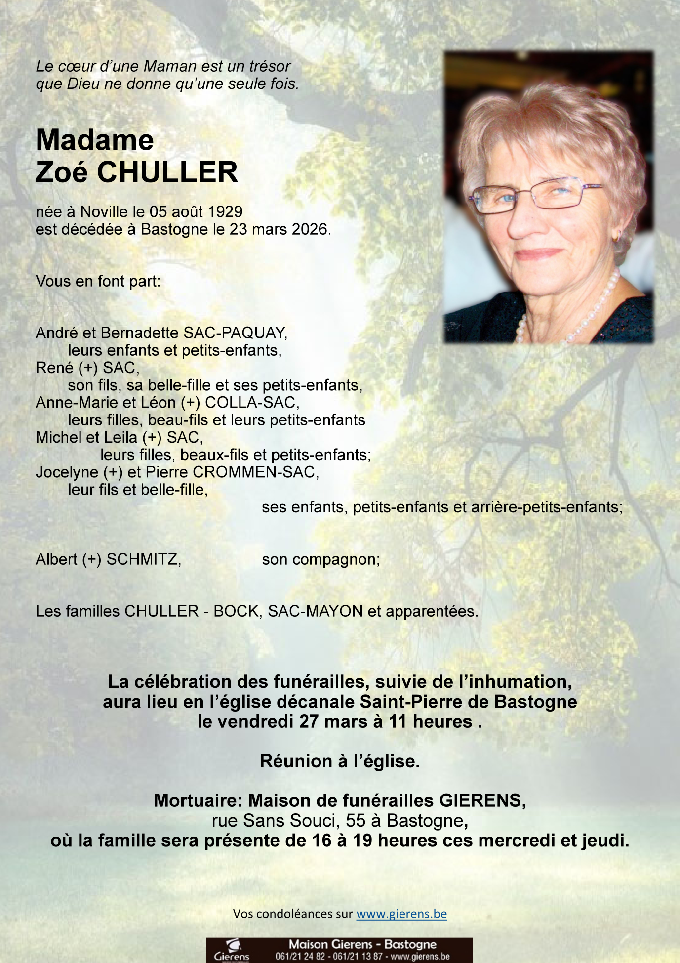 Décédée à Bastogne (6600, Belgique) le lundi 23 mars 2026 à l'âge de 96 ans