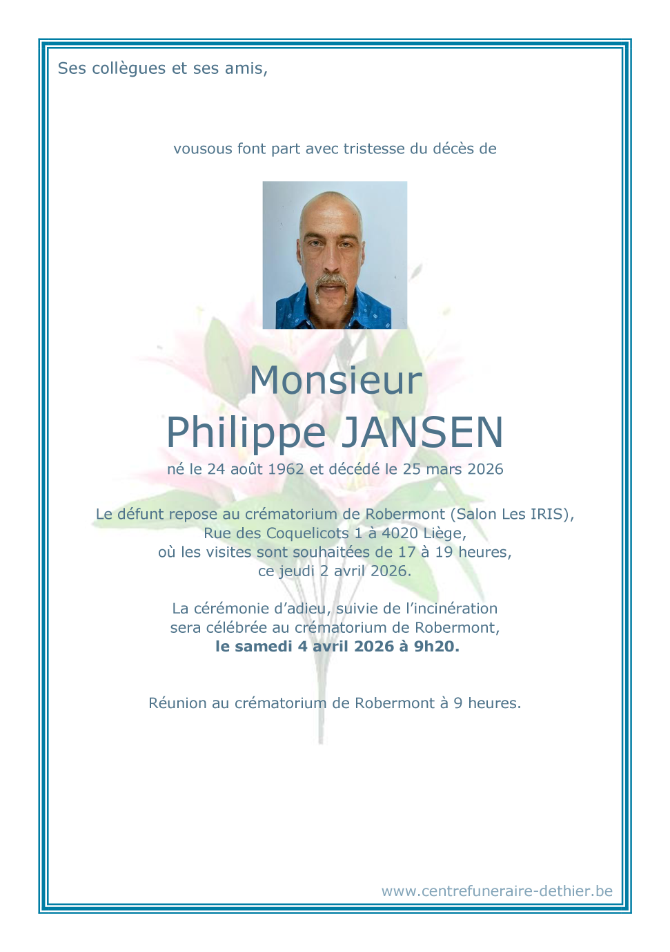Décédé à Liège (4020, Belgique) le mercredi 25 mars 2026 à l'âge de 63 ans