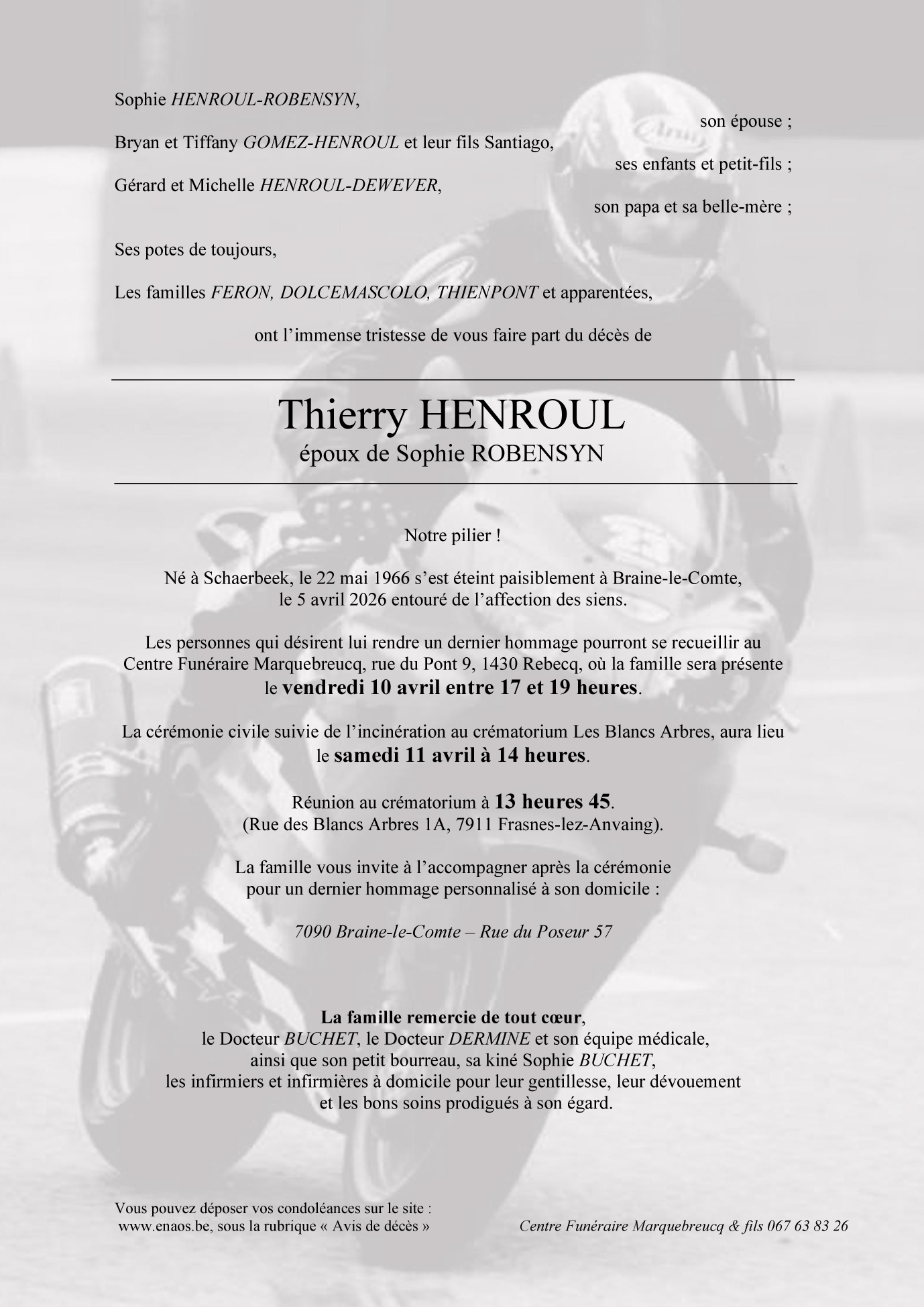 Décédé à Braine-le-Comte (7090, Belgique) le dimanche 5 avril 2026 à l'âge de 59 ans