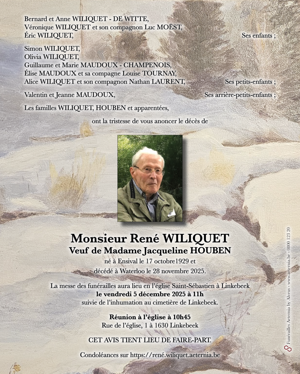 Décédé à Waterloo (1410, Belgique) le vendredi 28 novembre 2025 à l'âge de 96 ans